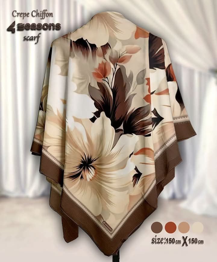 ارتقِ بإطلالتك مع خمار فورسيزون اسكارف المصنوع من خامة كريب شيفون خفيفة وناعمة، يمنحك إحساسًا بالراحة مع انسيابية راقية.